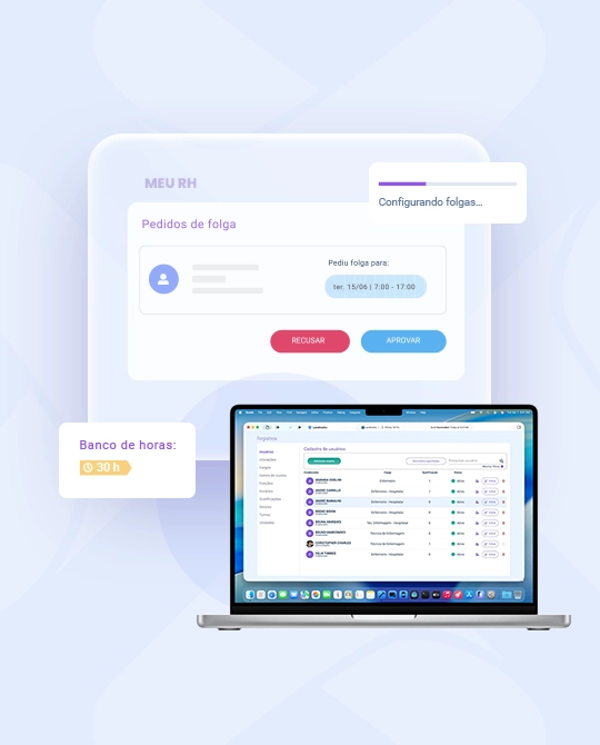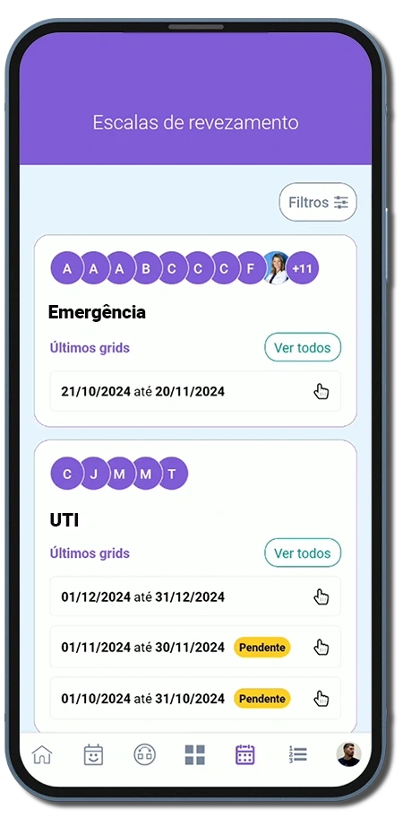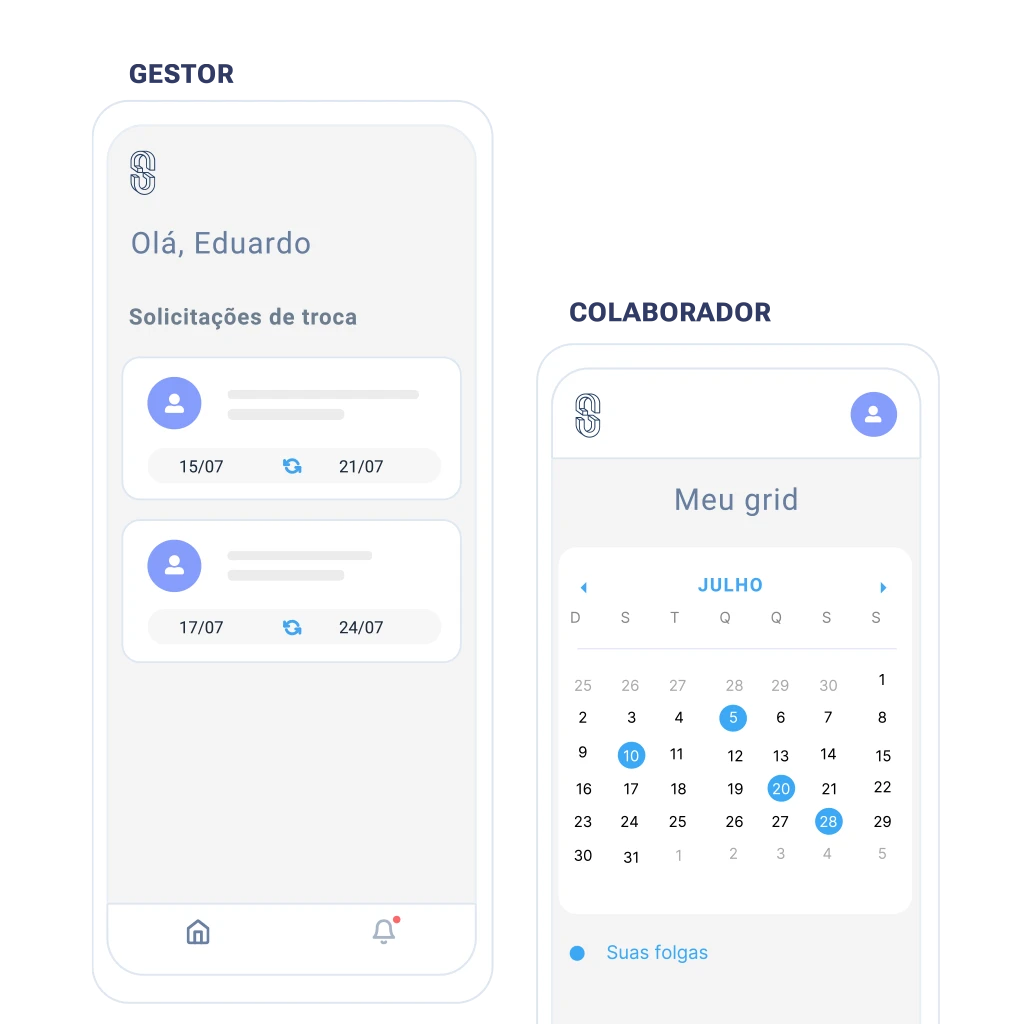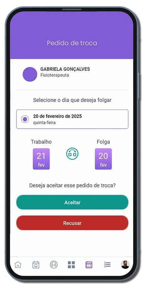 App mobile que conecta sua equipe às escalas inteligentes. Trocas de turno com aprovação automática por IA quando possível.