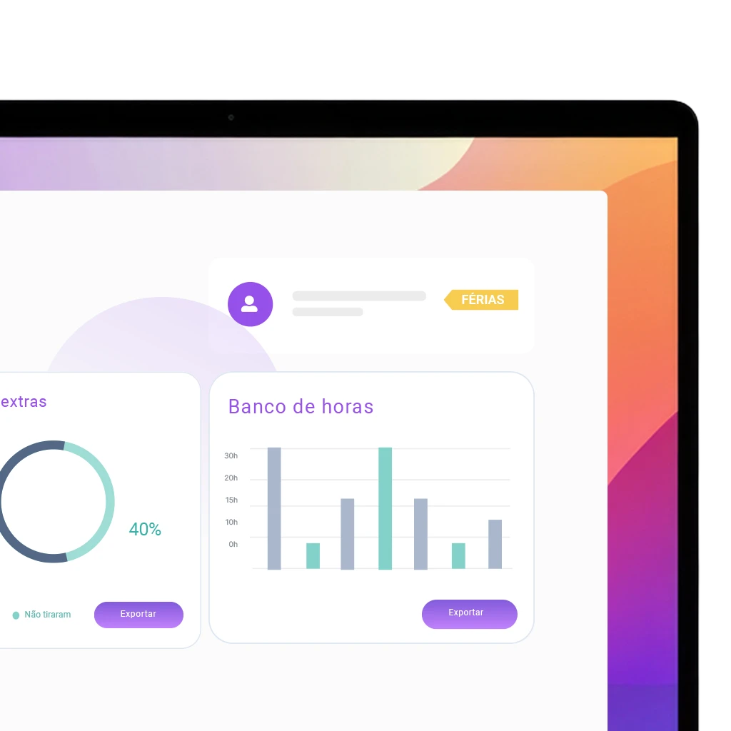 Visualize banco de horas, folgas pendentes e produtividade da equipe. Métricas que apoiam decisões estratégicas de gestão.