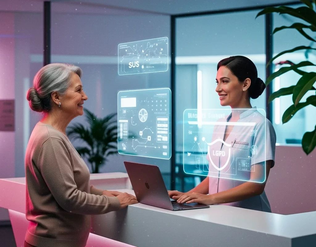 Do paciente ao SUS. Digitalize desde a recepção. Integre sistemas. Acelere repasses. LGPD nativo.