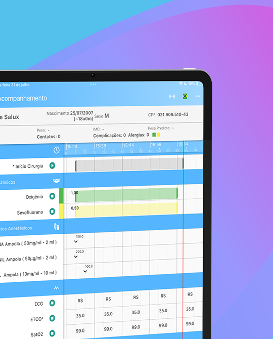 Tecnologia especializada que transforma a complexidade anestésica em segurança automatizada. Protocolos inteligentes, monitoramento contínuo e tranquilidade para toda a equipe perioperatória.